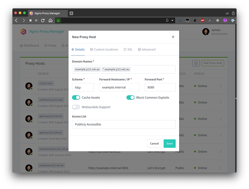 Easily forward to your websites running at home or otherwise, including free SSL, without having to know too much about Nginx or Letsencrypt